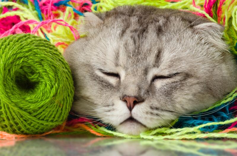 Constance's granddaughter helped them discover the name, Knittin' Kittens. One day while working on a project on her porch Constance dropped a ball of yarn. It fell out of her bag and rolled off the porch, into the paws of a kitten. Constance and her granddaughter watched the kitten play with the yarn and eventually get tangled. Once Constance freed the kitten from the yarn and returned to the porch her granddaughter remarked, "Grandma, I think that might have been a knitting kitten," and the rest was history.